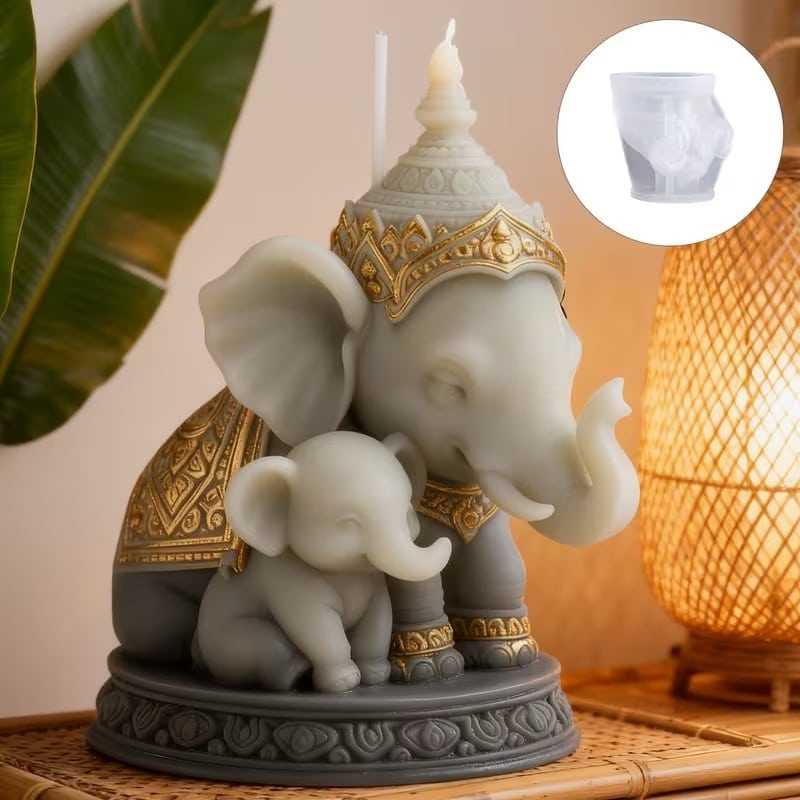 Este molde de silicona Elefante Sagrado con cría es ideal para crear piezas decorativas únicas, llenas de simbolismo y detalle. Su diseño representa protección, abundancia y conexión familiar, convirtiéndolo en una opción perfecta para velas artesanales, figuras decorativas y piezas de colección.