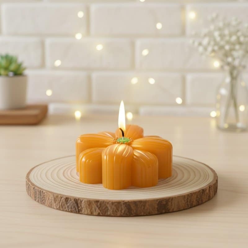 Este molde de silicona con diseño de flor calabaza es ideal para crear velas decorativas originales y acogedoras. Su forma redondeada con pétalos marcados recuerda a una flor tipo calabaza, logrando una pieza moderna y con fuerte presencia visual.