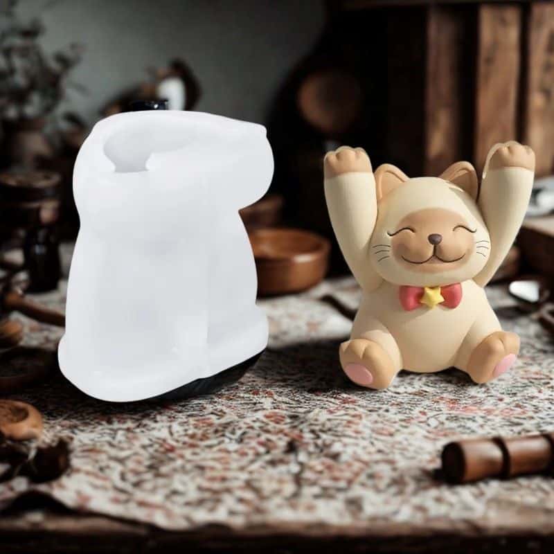 Crea piezas adorables con este molde de silicona en forma de gato. Su diseño simpático y detallado es perfecto para elaborar velas, figuras de yeso o resina, aportando ternura y alegría a tus creaciones.