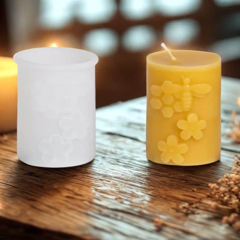 Da un toque natural a tus creaciones con este molde de silicona velón abeja. Su diseño con abejas y flores en relieve lo convierte en una pieza llamativa y especial.